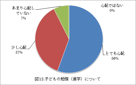 記述回答では,「現在の成績で本当に高校に行けるのか心配」「本人の方向性がまだはっきりしない」「勉強について行けず,進学についても不安が大きい」「勉強の仕方がよくわからないようで親がこうしたら?と言ったりしても親の言う事は納得できないようで…」といった不安が大きいようでした。